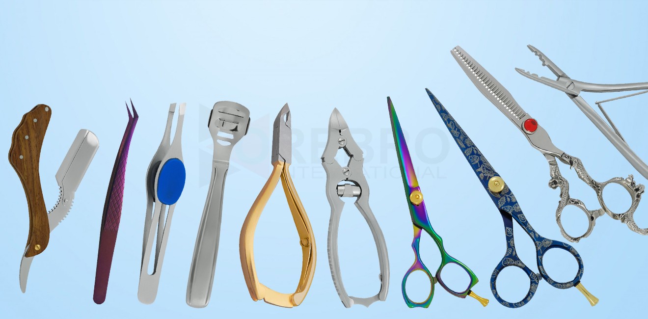 Beauty Instruments, Manicure Pedicure Tools, Podiatry Instruments, Barber Supplies including (Nail Nippers, Nail Cutters, Nail Scissors, Eyebrow Tweezers, Shaving Razors, Barber Scissors, Hair Cutting Scissors etc.)