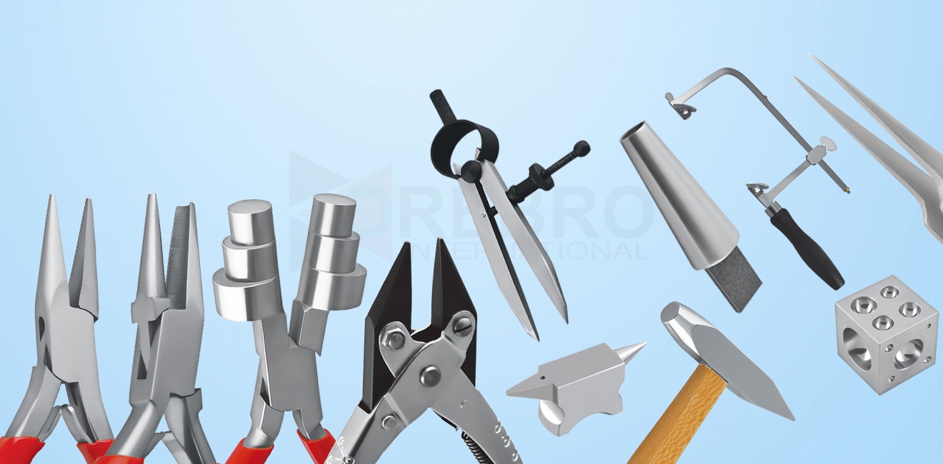 Jewelry Tools including Pliers (Round Nose Pliers, Flat Nose Pliers, Chain Nose Pliers, Bent Chain Nose Pliers, Side Cutting Pliers, Wire Wrapping Pliers, Crimping Pliers, Parallel Action Pliers, Ergonomic Handle Pliers Nylon Jaw Pliers, etc.), Jewelry Tweezers, Ring Cutters, Hammers & Mallets, Jewelry Anvils, Jewelry Shears, Mandrels and Dapping Tools, etc.
